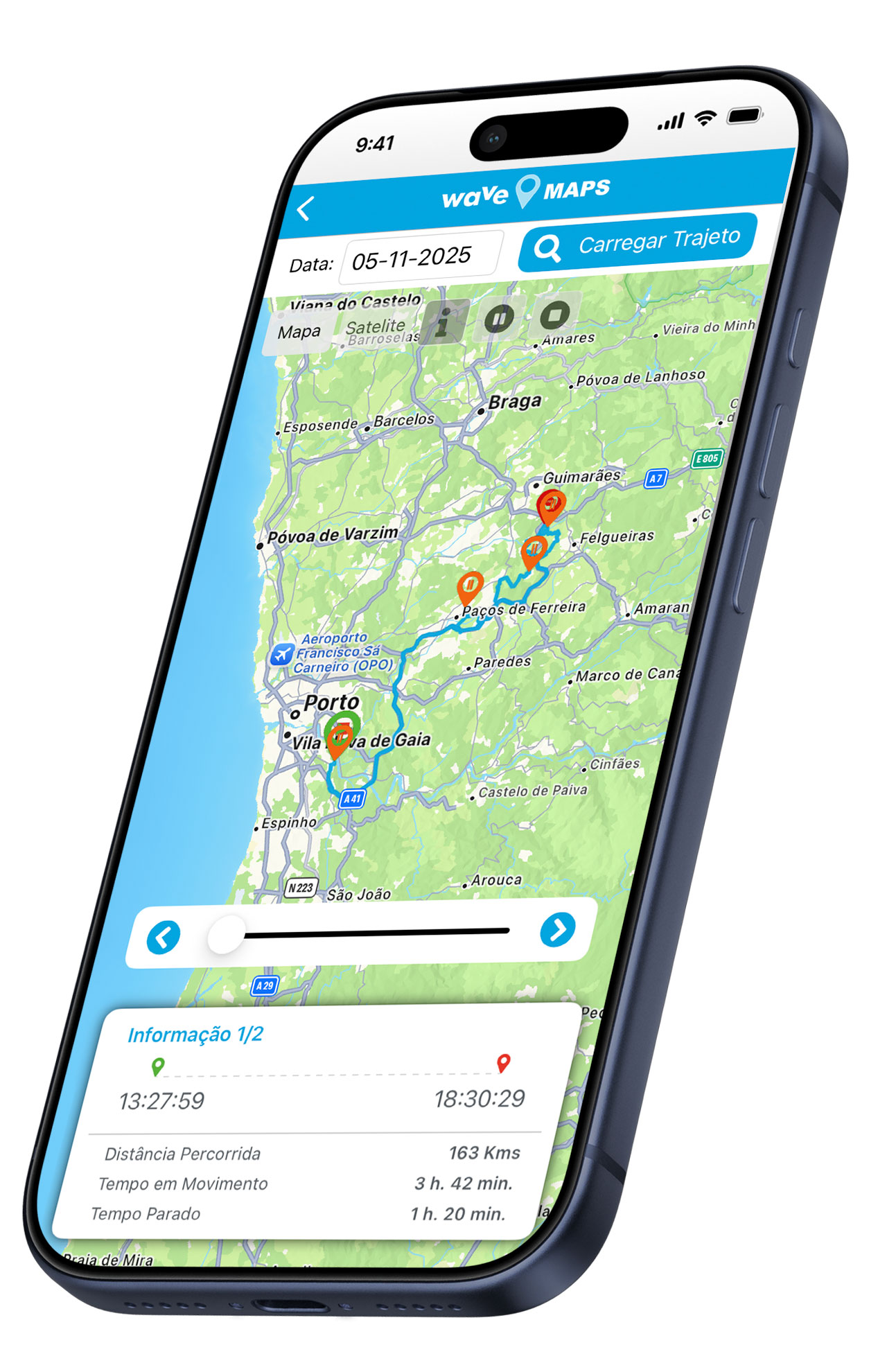 O Wave Maps foi concebido para garantir um controlo e gestão eficaz da sua frota, permitindo consultar e programar o envio por email de relatórios de viagens, gerir os custos, configurar alertas, avisos e muito mais.